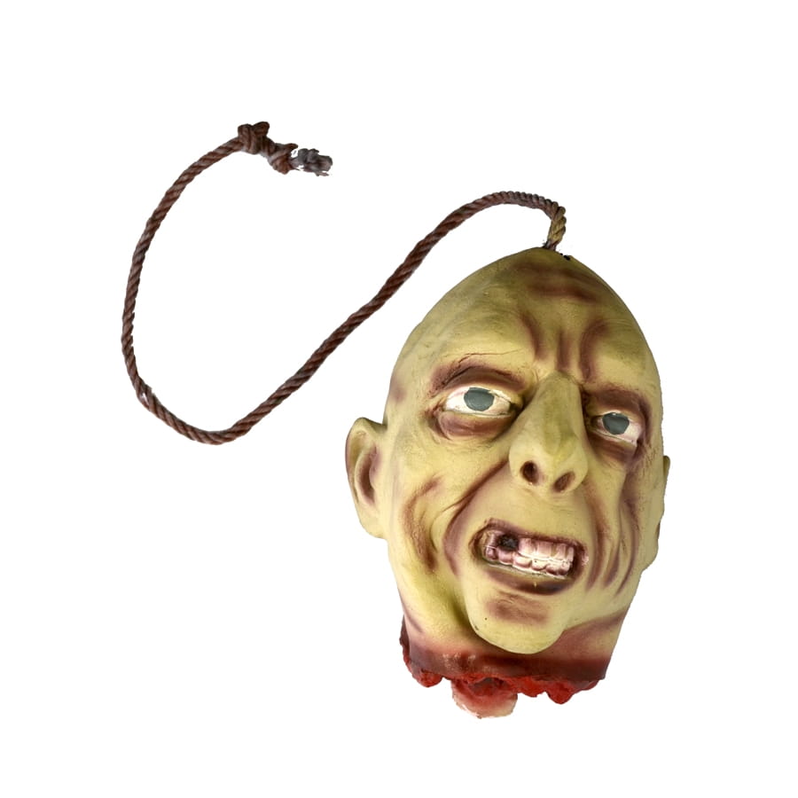 Agrémentez votre déguisement ou votre décoration avec cet affreuse tête coupée en latex. Elle mesure 24.5 centimètres sur 18.5 centimètres et est suspendue à une corde de 72 centimètres de long. Elle convient mieux à des adultes et à des adolescens.