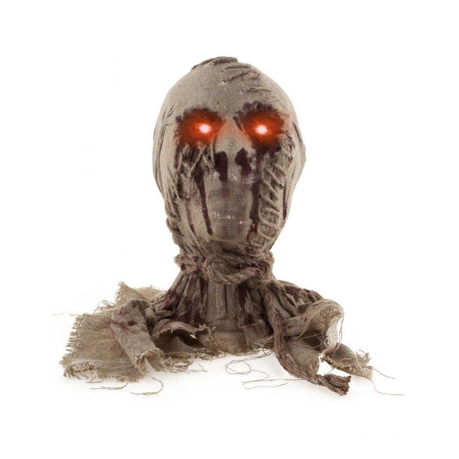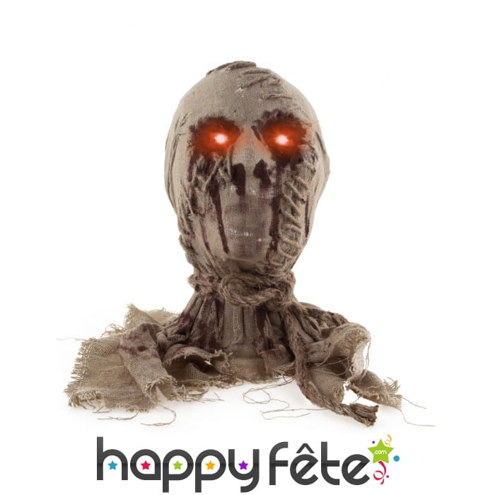 La tête de monstre recouverte de toile de jute, 50 cm sera sans doute la pièce maîtresse de votre décoration d'Halloween.
