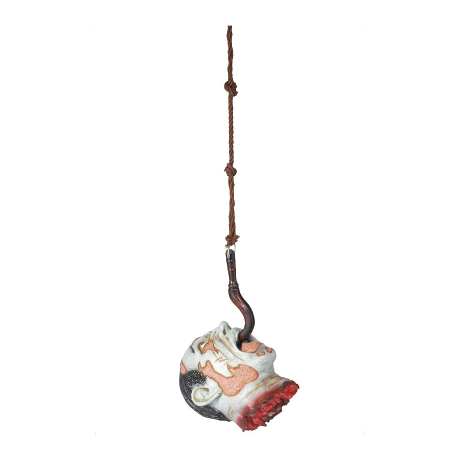 Tête décapitée de couleur blanche, noire et rouge, attachée à un crochet de pêcheur. Cet accessoire mesure 100 centimètres de long. Utilisez-le comme accessoire de décoration à l'occasion d'une soirée d'Halloween pleine de souvenirs horrifiants!
