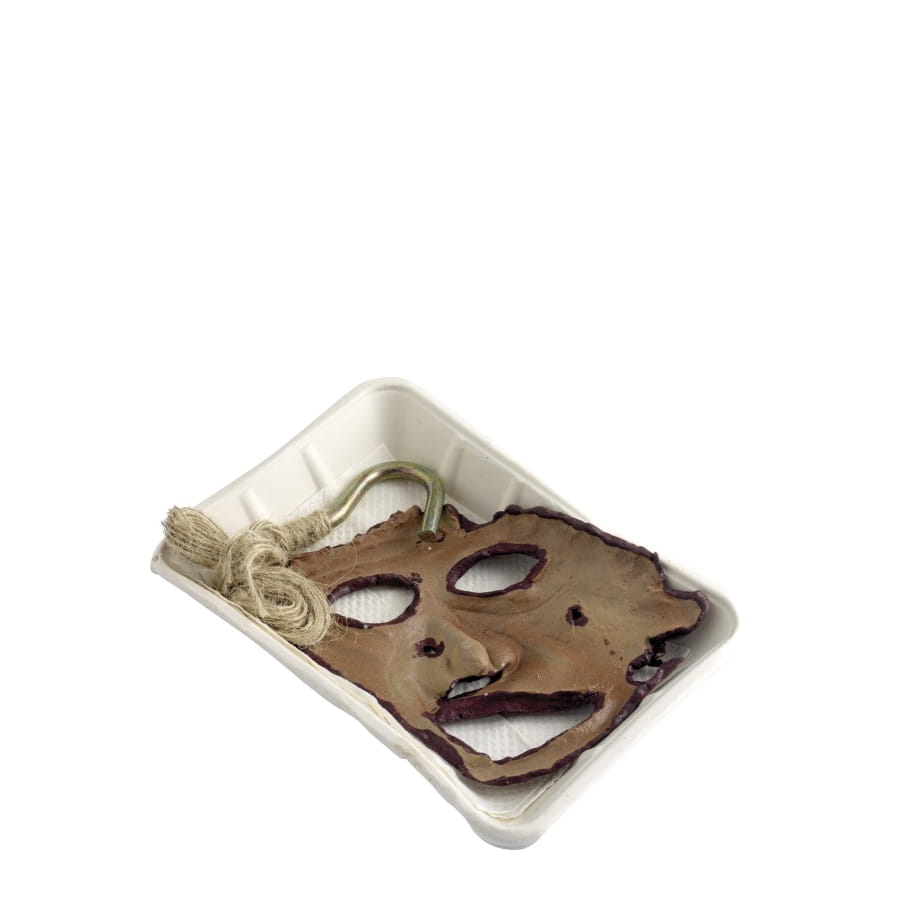 Tête décapitée servie sur un plateau. Pour agrémenter cet accessoire, vous aurez également un cordon et un crochet. Servez-vous-en comme accessoire de décoration à l'occasion d'Halloween.