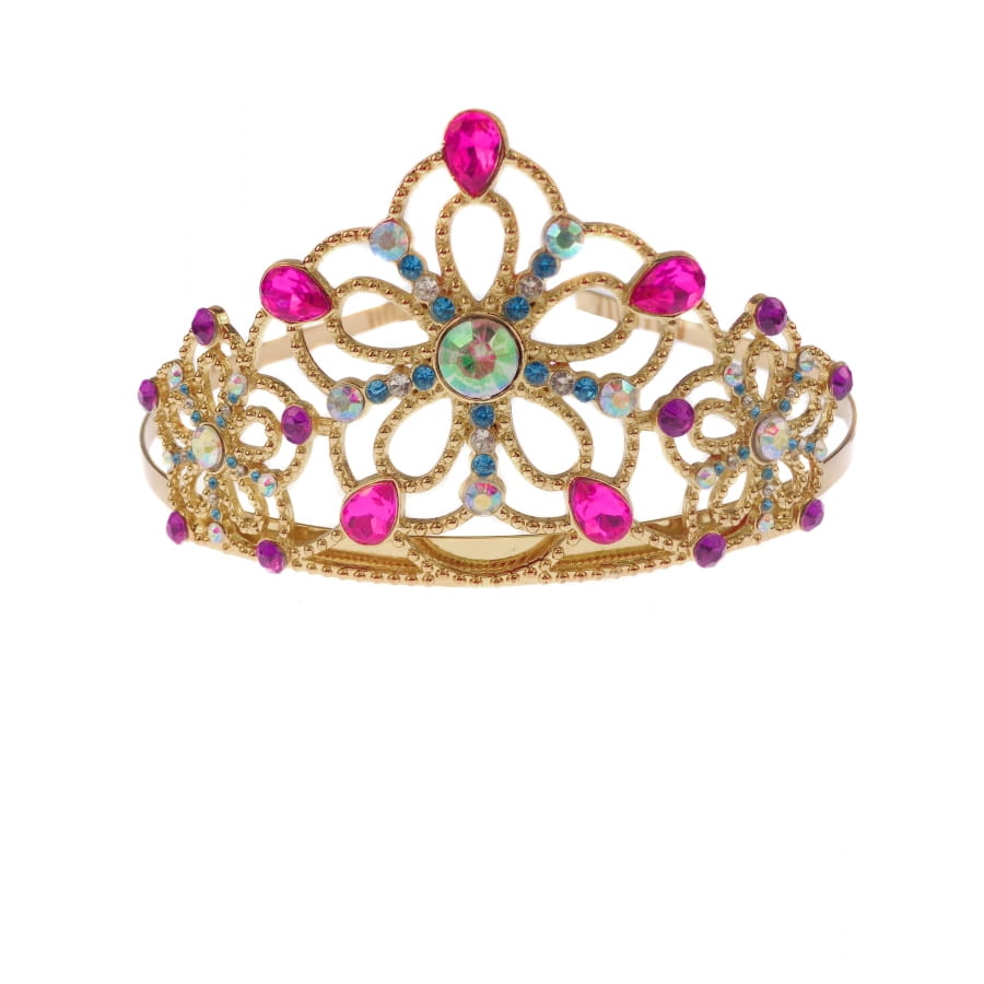 La tiare dorée et colorée de princesse pour fille est en métal.
