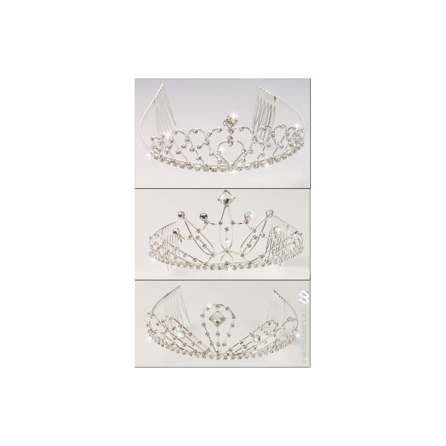Tiare argentée de conte de fée recouverte de strass. Lorsque vous passerez la commande, vous ne pourrez choisir ni le modèle ni la couleur de l'accessoire. Vous le recevrez dans un des modèles présentés. Cette tiare est parfaite pour compléter une tenue de reine.