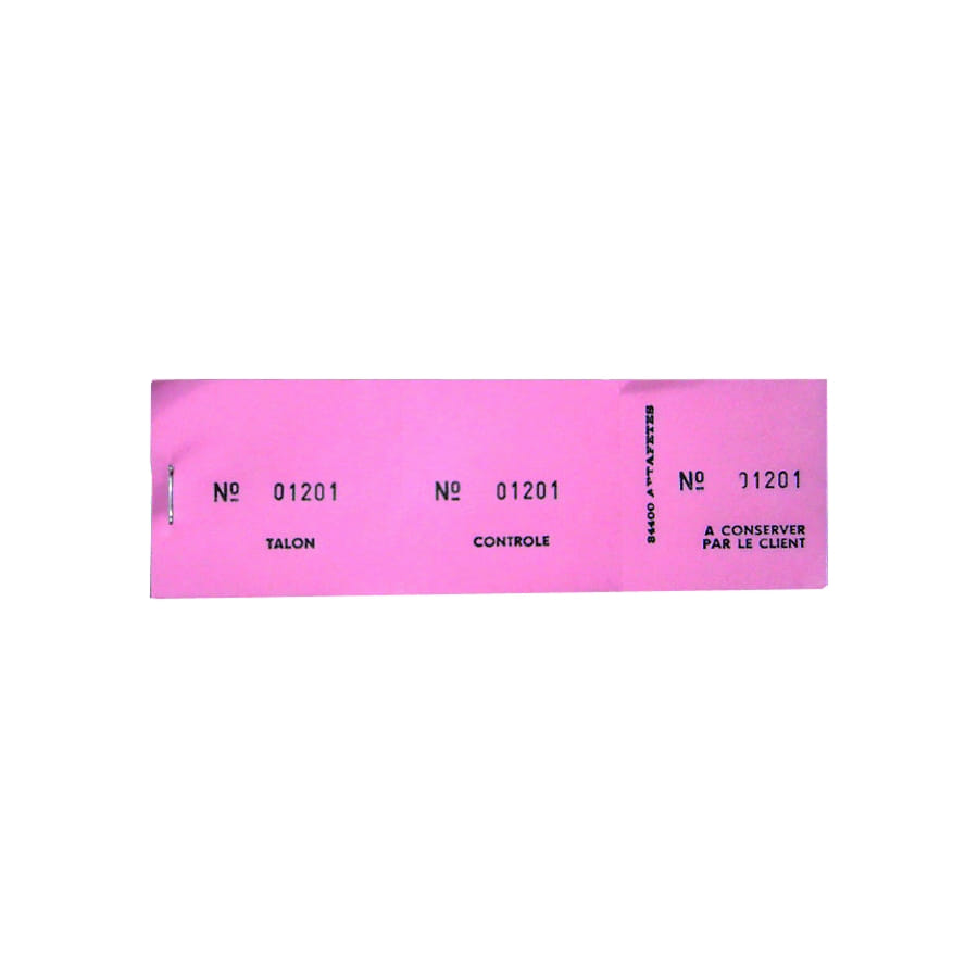 Carnet de ticket de 3 souches numérotées. Le carnet contient 100 tickets mesurant chacun 15, 5 centimètres de largeur sur 5 centimètres de hauteur. Lors de la commande, vous ne pourrez choisir ni le modèle ni la couleur du carnet. Vous le recevrez en blanc, bleu, jaune, rouge, orange, vert ou rose. Ce carnet est parfait pour une kermesse.