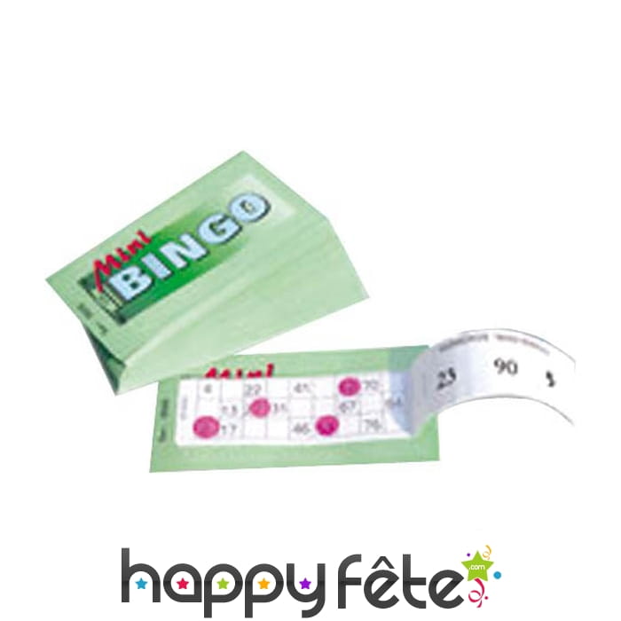 Billets de mini Bingo de couleur verte avec imprimés blancs et rouges. Ces billets sont vendus en paquet de 500. Cet accessoire est idéal pour une kermesse.