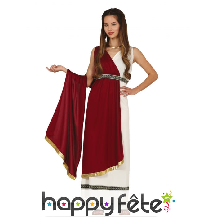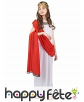 Votre adolescente fera sa grande entrée dans la royauté du monde antique, avec la toge blanche de romaine pour ado avec drapé rouge.
