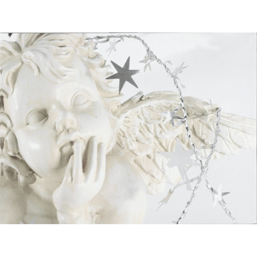 Cette toile avec décor d'ange vous pourrez vous en servir pour la saint valentin ou une autre fête. Vous pourrez vous en servir à plusieurs occasions. Ce décor d'ange avec des étoiles argentées fait 40 *40 centimètre.