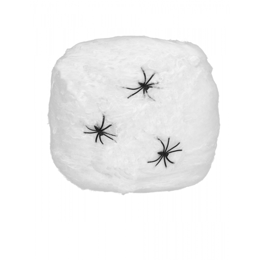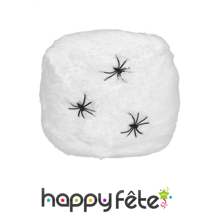 L'accessoire est composé d'une toile faite en fibres polyester et de 3 effrayantes araignées synthétiques noires.