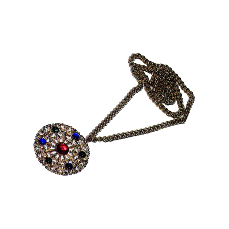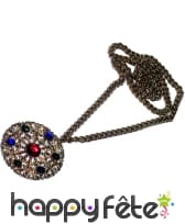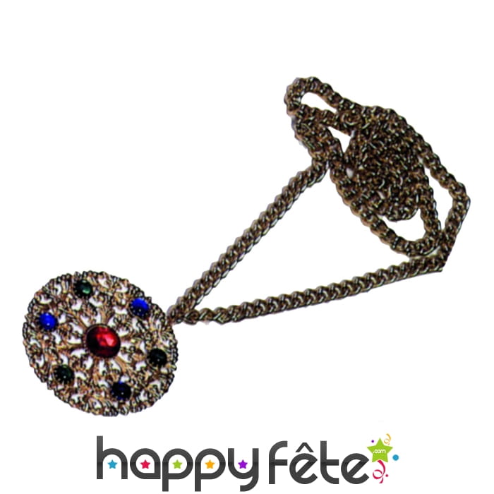 Toison en métal plaquée or. La toison est ornée de 7 fausses pierres précieuses et d'un fermoir en aluminium. C'est un accessoire idéal pour un déguisement de gitan ou de prêtresse pour soirée basée sur les thèmes du Moyen Age, de la magie ou de la sorcellerie.