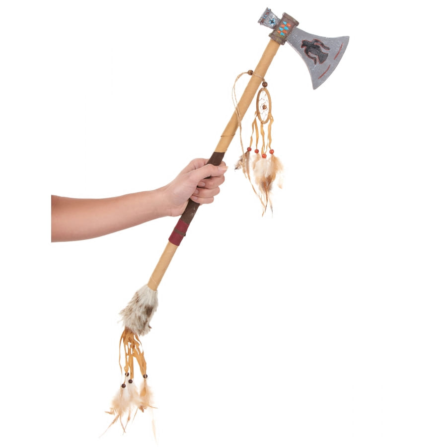 Ce tomahawk en plastique de 60 cm de longueur complétera votre tenue de peau-rouge.