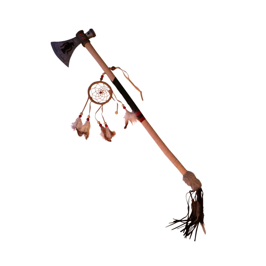 La hache, imprimée d'un symbole en forme d'aigle, dispose d'un manche de couleur rouge, noir ainsi que beige.
