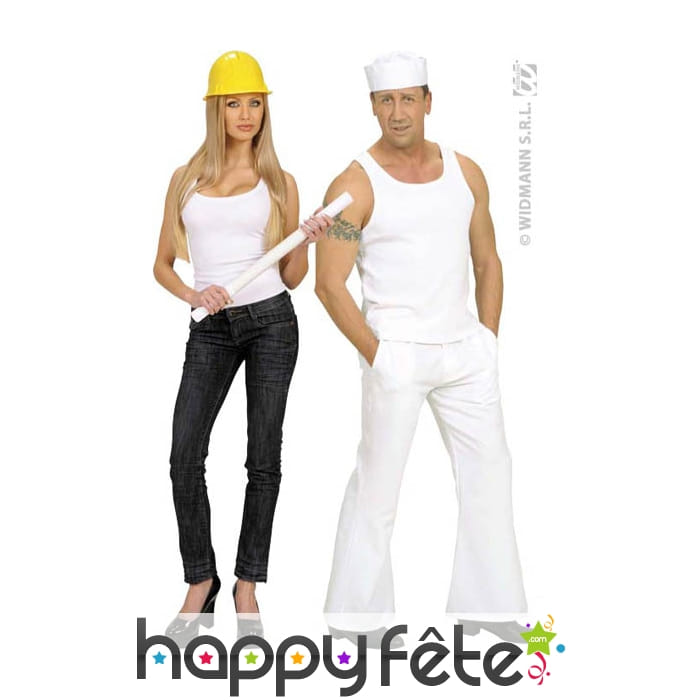 Top de couleur blanc façon Marcel pour homme ou femme. Cet accessoire est disponible en taille M, L ou XL. Vous pourrez le combiner à plusieurs accessoires pour créer un déguisement original.