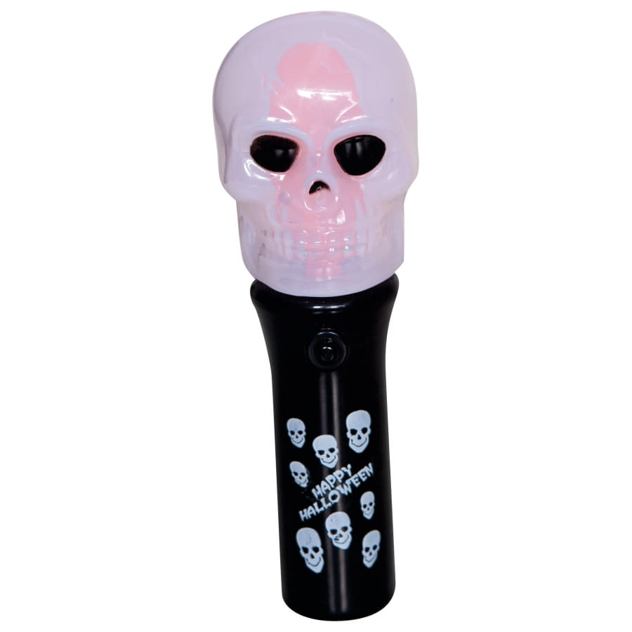 Il est question d'une torche formée d'une tête de mort blanche montée sur un support de couleur noire.