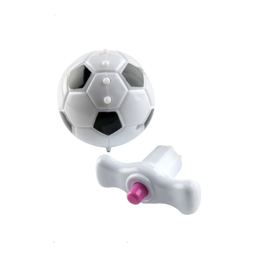 Toupie en forme de ballon de football de oculeur blanche et noire, livrée avec lanceur. Ce petit jeu occupera votre garçon pendant des heures!