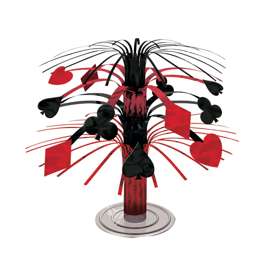 Vous aimez les jeux ? Vous tombez bien car cet article de décoration est dédié aux amateurs de jeux de casino. Découvrez un superbe tourniquet centre de table Casino. Des motifs coeur rouge, carreau rouge, pique noir et trèfle noir sont suspendus autour du présentoir. L'ensemble fait 19 cm de dimension. Le modèle est spécialement prévu pour orner une table.