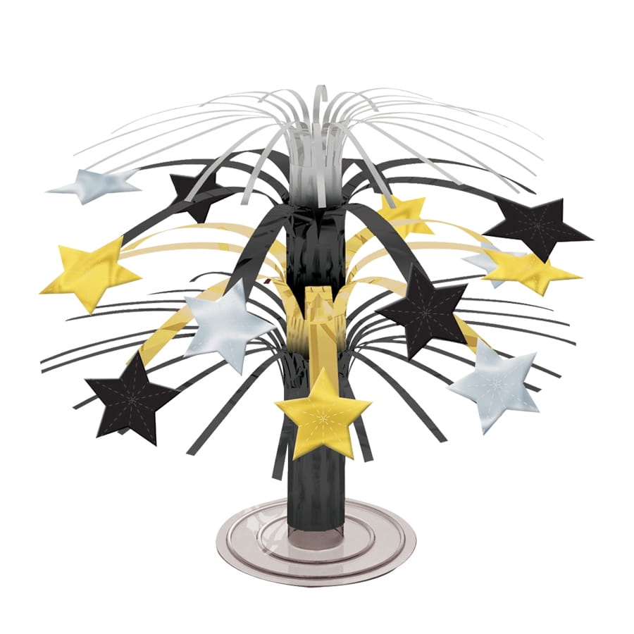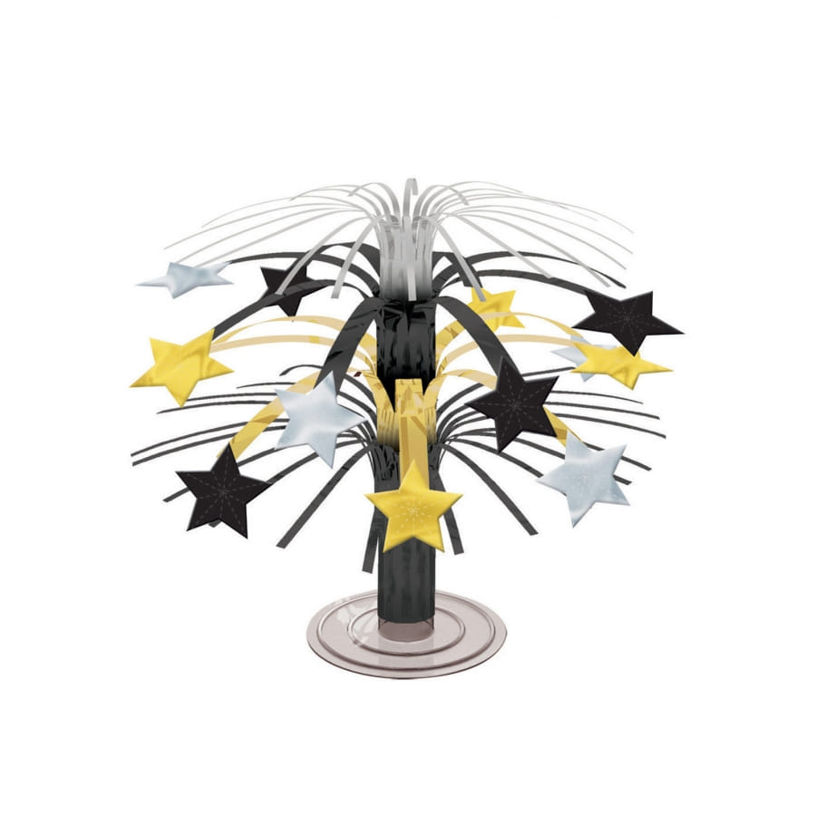 Réalisez un univers cinématographique à faire tourner la tête de vos invités ! L'idée du tourniquet centre de table Hollywood a été élaborée à partir du célèbre trottoir « Walk of Fame ». Une noyade d'étoiles de couleur argent, noir et or et bronze sont disposés sur le tourniquet. L'ensemble fait 19 cm de dimension.