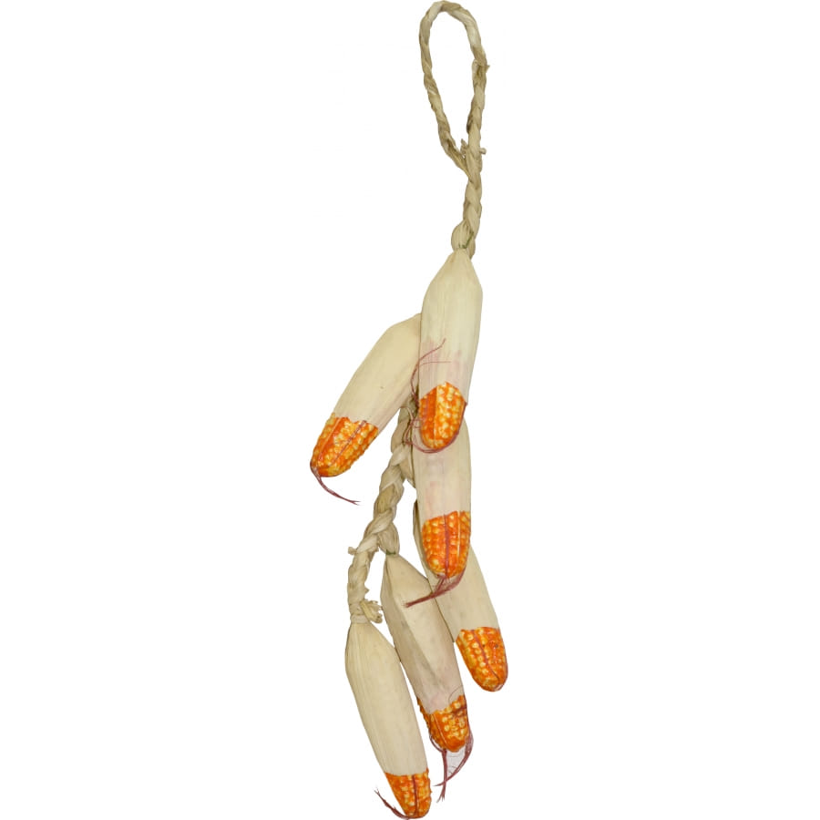Tresse de couleur beige avec 6 maïs accrochés au bout. La tresse mesure 56 centimètres de longueur. Les maïs sont de couleur beige et orange et mesurent chacun 13 centimètres. Servez-vous de cet accessoire pour compléter une décoration basée sur le thème de la nature ou des légumes.