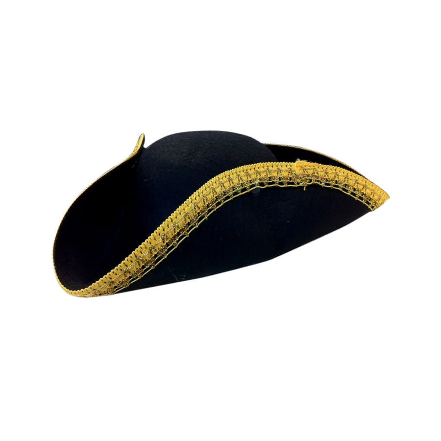 Vous pouvez agrémenter votre tenue de pirate avec ce tricorne noir avec liseré doré pour adulte lors des carnavals, des fêtes déguisées et plus encore.