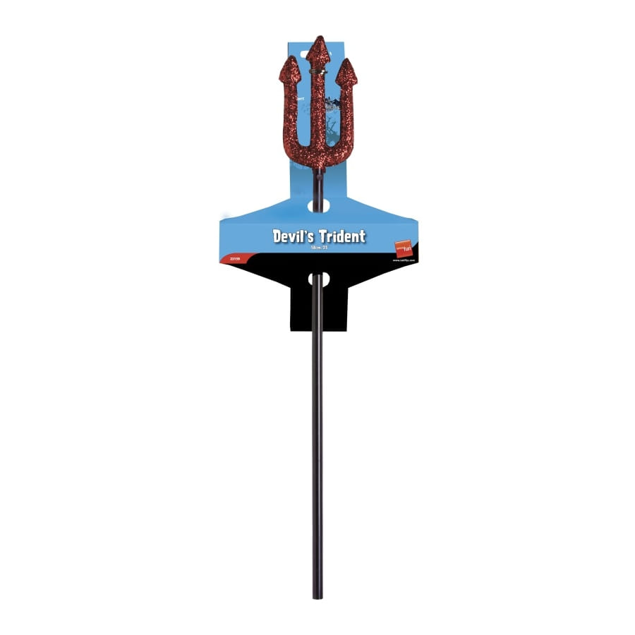 Pour compléter votre tenu de diable ou de diablesse vous pourrez vous en servir de ce trident. Il fait 58 centimètre de long, la manche est de couleur noir, la fourche est rouge.