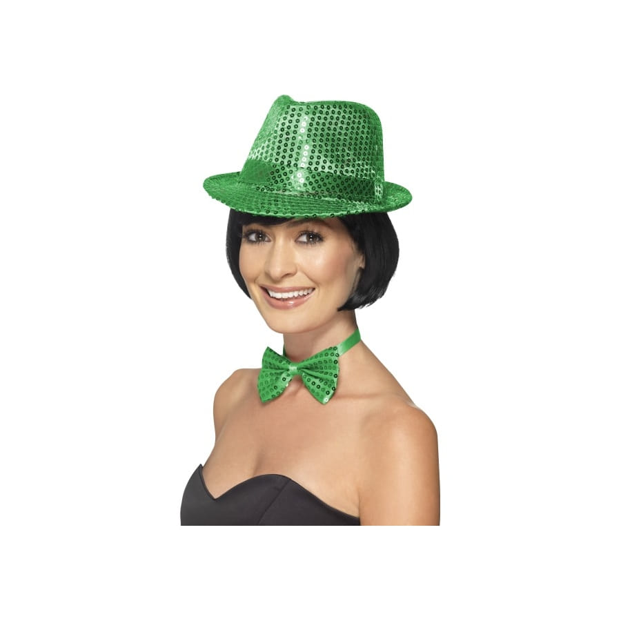 Accessoirisez vos déguisements avec les meilleurs chapeaux que nous avons sur Happyfete, parmi lesquels ce trilby vert à sequin. Ce chapeau est garni de sequins de couleur verte, ce qui lui donne un aspect parfait pour un déguisement disco ou un déguisement de danseur et danseuse car homme et femme peuvent très bien le porter.