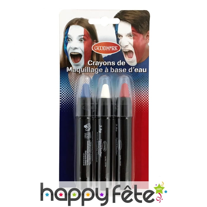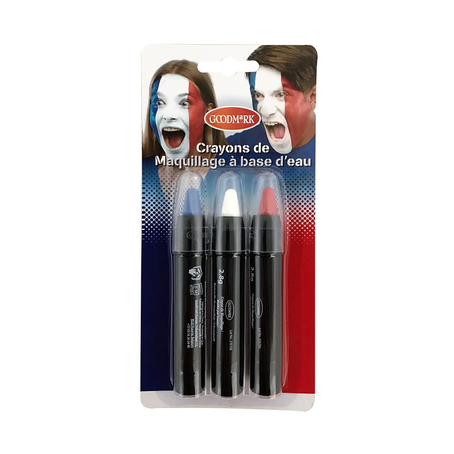 Coloriez votre visage avec ce trio de crayons bleu-blanc-rouge rétractables, et devenez le supporter le plus fou de l'équipe de France.