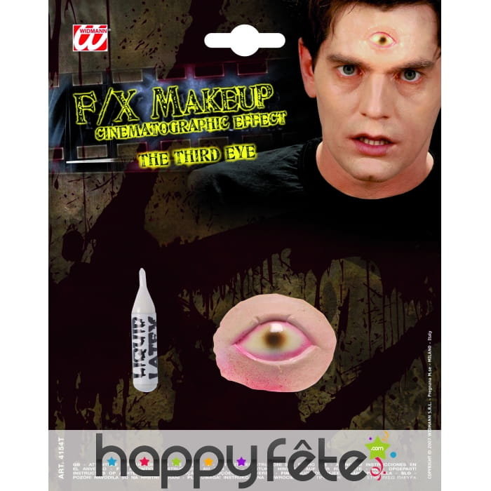 Pour une fête sur le surnaturelle, ou encore pour Halloween , optez pour ce faux œil. Vous pourrez le coller sur votre front. Il est vendu avec colle. Il est beige avec au centre l’œil de couleur marron.