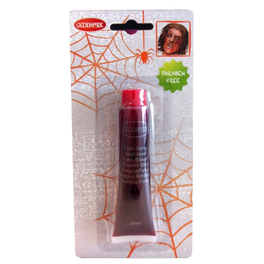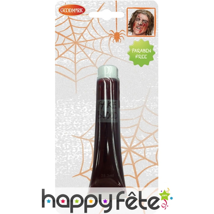 Donnez vie à votre déguisement en vous procurant un tube de faux sang pour le compléter. Le tube contient 28 millilitres de faux sang que vous pourrez appliquer en maquillage sur votre peau ou en décoration sur vos vêtements ou vos nappes (attention néanmoins lorsque vous l'appliquez sur la peau. Il est possible qu'il faille quelques lavages pour que la couleur s’efface totalement). Servez-vous d'eau et de savon pour l'enlever de votre peau et placez votre textile à la machine pour le nettoyer.
