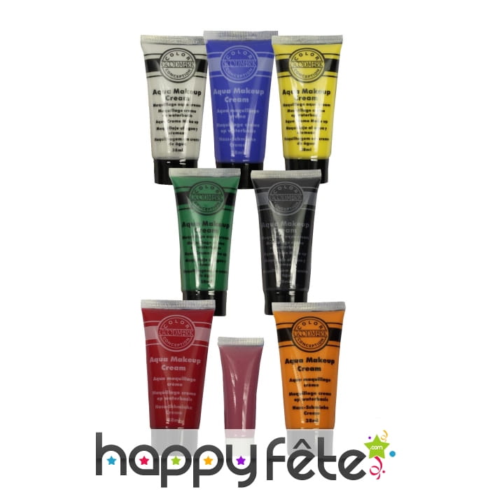 Vous voulez ressemblez à votre personnage ou à votre animal préféré? Ce tube de crème de grimage, 38ml fera l'affaire. Il existe en argent, or, marron, bleu foncé, blanc, bleu, noir, orange, rouge, rose, vert et jaune, soit 8 couleurs disponibles. Ce produit convient seulement aux adultes. Il s'utilise pour maquiller de plus grandes surfaces. Il se compose de produits qui lui garantissent une longue tenue. Ce tube pourra donc très bien compléter votre déguisement d'Halloween ou de soirées à thème.