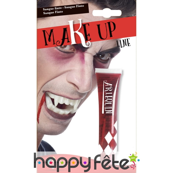 Le faux sang reste l'incontournable cosmétique pour un déguisement de la fête des morts. Si vous n'avez pas encore essayé, sautez le pas et voyez le résultat. Nous vous proposons le tube de faux sang en gel, 28ml. Il convient aussi bien à la peau des grandes personnes, que des enfants. Le contenu du tube ressemble à un liquide un peu visqueux, se rapprochant de la texture du sang, surtout grâce à sa couleur rouge.
