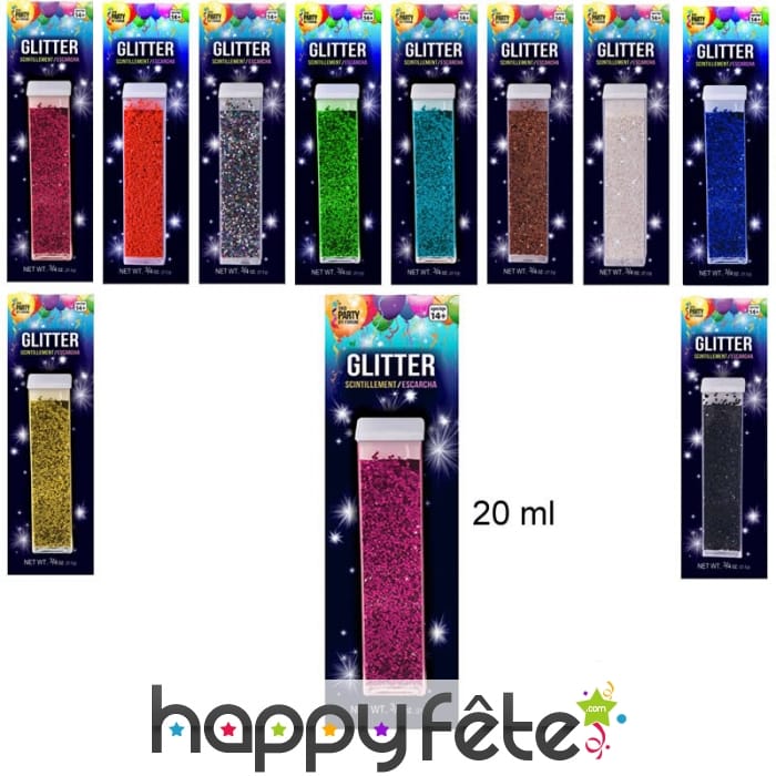 Voici un objet qui vous servira à de multiples décorations pour les fêtes, un tube de paillettes décoratives, 20ml. A noter qu'on ne peut pas s'en servir pour le corps, juste pour orner des objets bricolés soi-même. Le tube est disponible en argent, bleu, cuivre, fuchsia, irisé, multicolore, noir, or, orange, rouge, turquoise et vert, à vous de choisir !