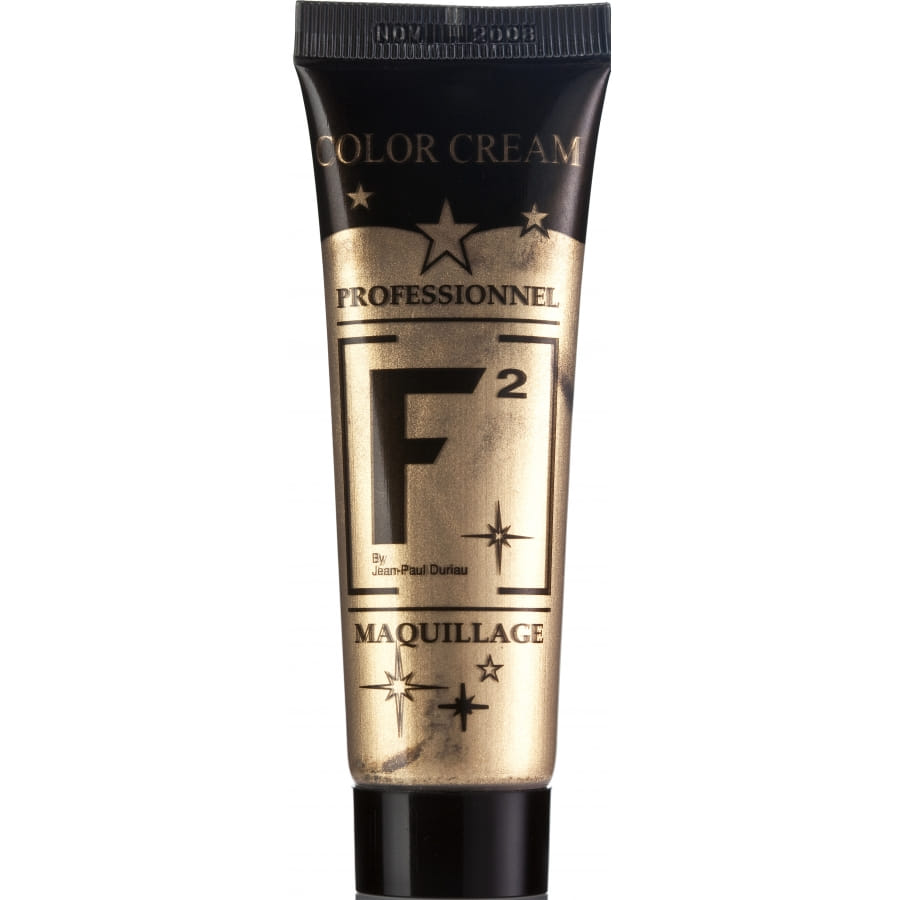 Tube de maquillage professionnel de couleur dorée de marque Fardel. La capacité de ce tube est de 30 millilitres. Cette crème s'applique directement sur votre peau. Utilisez un pinceau pour un meilleur résultat. Pour l'enlever, utilisez du savon et de l'eau. Vous pouvez superposer les couleurs. La couleur dorée convient à un déguisement de carnaval ou d'Halloween.