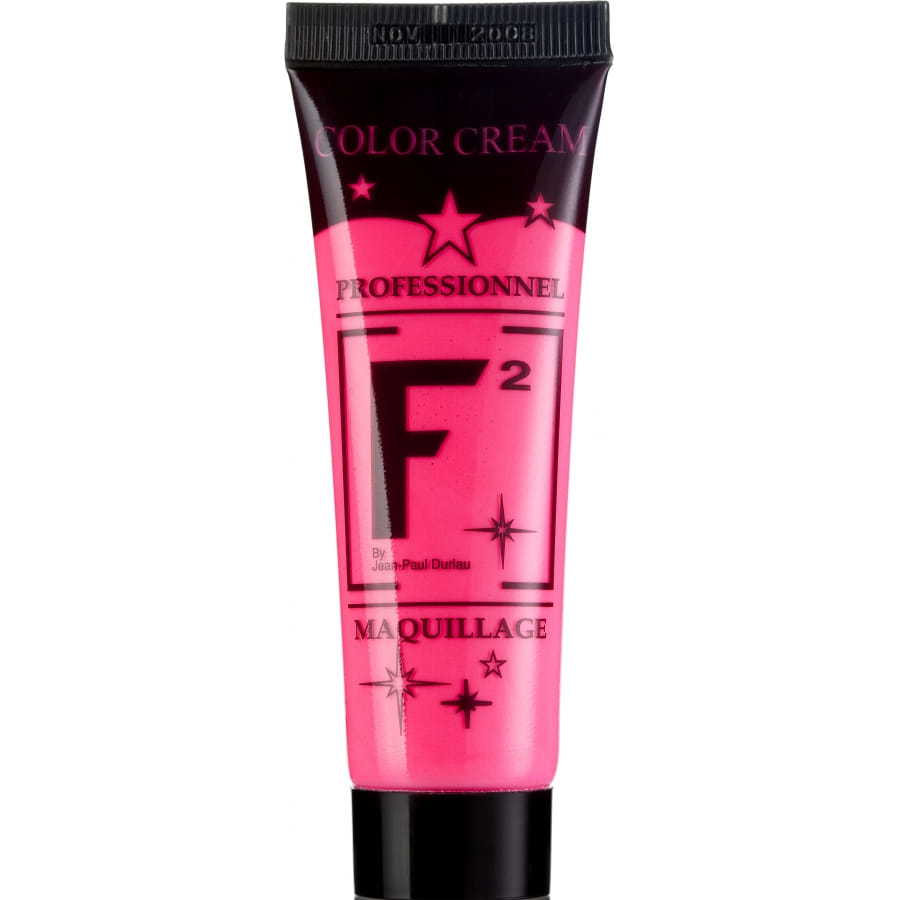 Tube de maquillage à l'eau professionnel de couleur rose fluo de marque Fardel. La capacité de ce tube est de 30 millilitres. Appliquez la crème directement sur votre peau. Avec l'aide d'un pinceau, vous obtiendrez plus de précision. Pour l'enlever, utilisez du savon et de l'eau. Les couleurs sont superposables. Cette crème réagit aux ultraviolets.