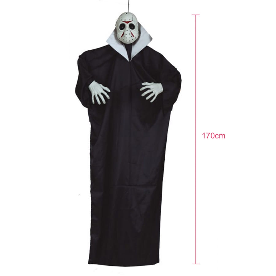 Si vous cherchez une idée de déco originale pour un Halloween des plus terrifiants, voici le tueur au masque de base ball à suspendre, 170 cm.