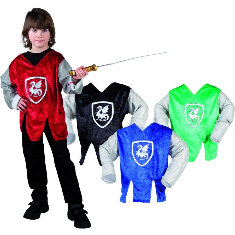 Une tunique de chevalier et dragon, votre enfant sera heureux de porter ce déguisement. Il voudra impressionner ces amis avec ce déguisement de tunique de chevalier et dragons, il pourra le porter pour le carnaval ou encore pour un gouter d'anniversaire ou il incarner un chevalier. Ce déguisement est composé d'une tunique avec un dragon de couleur blanc dessus. Il est disponible en noir, bleu, noir, vert ou rouge.