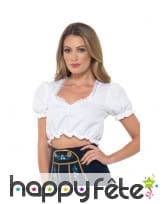 C'est une tunique pour femme, qui présente un col rond et de longues manches légèrement amples.
