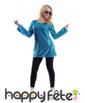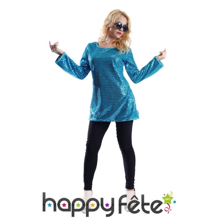 Craquez pour cette tunique disco bleue à paillettes pour femme, et ambiancez la piste de danse sur un air musical rétro.