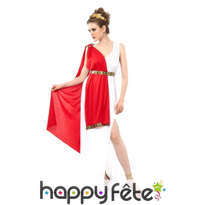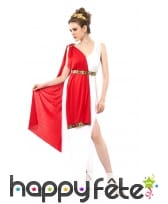 Mettez en avant la grâce de votre démarche de déesse de la Grèce antique, avec la tunique romaine blanche avec drapé rouge, femme.