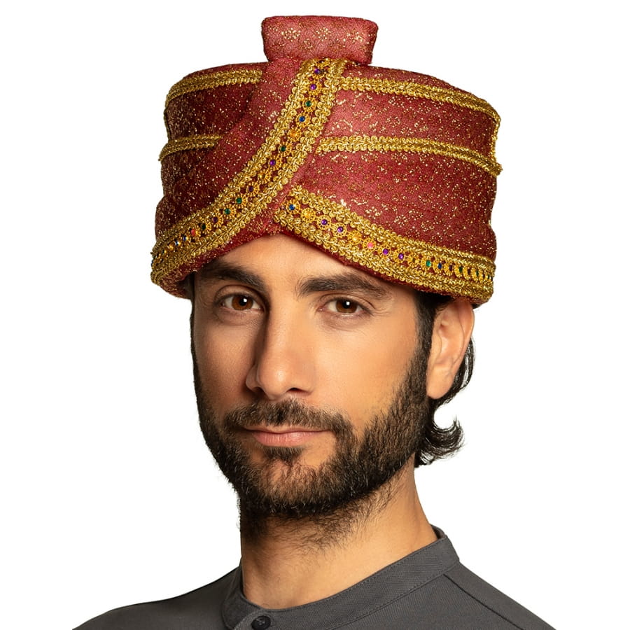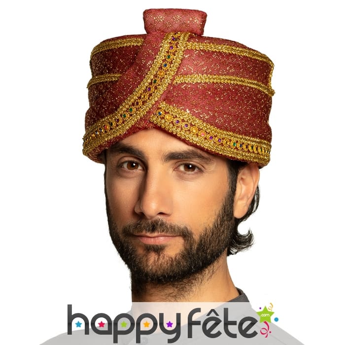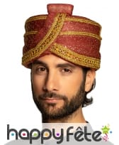 Le turban de sultan rouge pailleté pour adulte conviendra aux hommes.