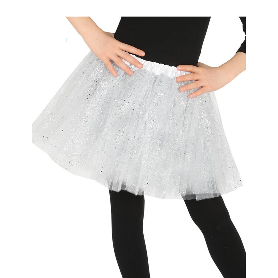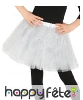 Ce Tutu blanc petite fille en tulle pailleté argenté est idéal pour compléter un déguisement de fée lors des soirées costumées.