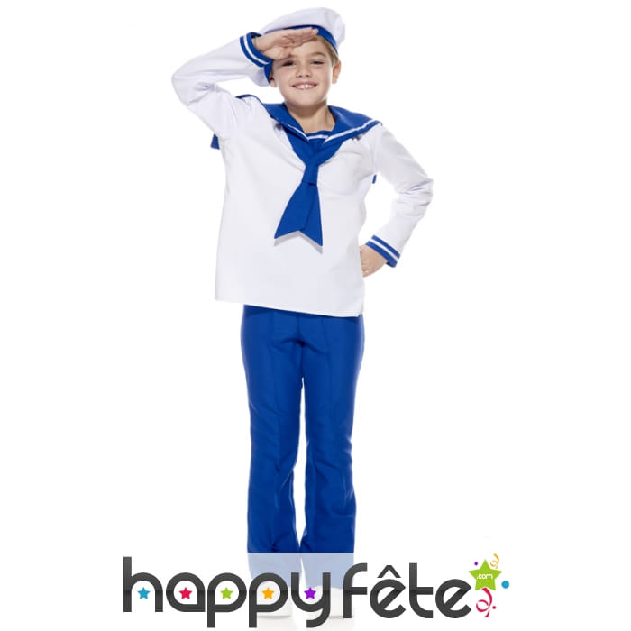 A la découverte d'une vie de marin ! Les petits garçons sont souvent intrigués par les métiers qui font voyager. Pour devenir marin à l'âge de dix ans, il existe bel et bien une solution ! Il suffit de se lancer dans l'univers du déguisement. Le succès est assuré avec l'uniforme blanc et bleu de petit marin. Il est formé par une tunique à manches longues, de couleur blanche et bleue, qui sera portée au dessus d'un pantalon bleu marine. Disposez également d'une cravate bleue. Le béret blanc et bleu peaufine l'uniforme en tout beauté. Faites de votre petit garçon un véritable marin en sélectionnant parmi les différentes tailles dédiées aux 5 à 11 ans.