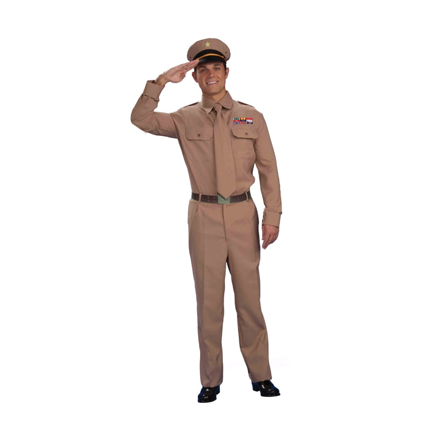 A vos ordres mon Général ! Ce déguisement uniforme de général de la seconde guerre mondiale est composé d'une chemise, d'un képi, d'une cravate et d'un pantalon. Cet ensemble si complet est de couleur marron, les éléments sont tous de la même couleur. La chemise est à manches longues, munie de deux poches parallèles sur le devant. Ce bel uniforme pour homme va vous transformer en un vrai soldat, chic et séduisant, le temps d'une soirée déguisée ou sur le thème de la guerre. Qui osera désobéir à la loi ? Vous serez en mesure de faire régner la paix en incarnant un officier autoritaire et courageux et vous serez l'homme le plus respecté de la soirée, alors qu'attendez-vous ?