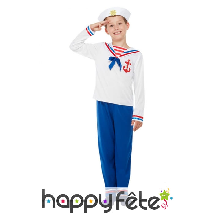 Offrez à votre enfant une tenue qui fera de lui le parfait moussaillon d'une soirée sur la marine, grâce à l'uniforme de marin pour enfant avec casquette.