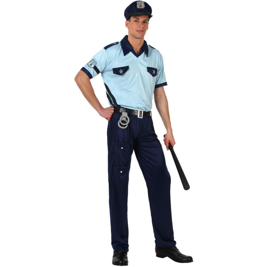 On reconnait forcément un policier par son uniforme de travail. Si vous voulez intégrer les forces de l'ordre le temps d'une soirée, il vous faudra le déguisement qui va avec. Cet uniforme de policier bleu pour homme adulte est une opportunité à saisir. Il s'agit d'un ensemble complet composé d'un haut, d'un pantalon et de divers accessoires. Le haut est une fausse chemise élastique de couleur bleue, qui s'enfile par la tête. Elle est dotée d'un faux col, de faux boutons et de fausses poches. Le pantalon est élastique à la taille, de couleur bleu marine, avec insigne sur le côté et fausses poches intégrées. Il sera accessoirisé par une ceinture à boucle noire. Retrouvez aussi un tour de bras avec insigne dans le lot. Pour la touche finale, vous serez équipé d'une casquette bleue avec insigne de police.