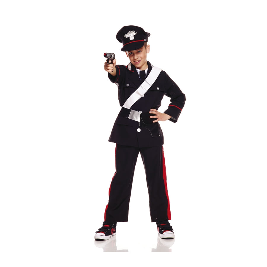 Si vous cherchez encore un costume pour les fêtes, nous en avons une large collection sur notre site. Pour les petits garçons, nous aimerions vous suggérer cet uniforme de policier carabinier pour enfant composé d'une veste à longues manches de couleur bleue marine tombant sur la taille, dont le col et les manches sont bordés d'une fine bande rouge. Pour le bas, nous proposons un pantalon bleu marine assorti à la veste, avec une bande rouge épaisse sur le coté de chaque jambe. Le costume est livré avec une ceinture doté d'un holster pour y mettre son arme et pour finir, une casquette bleue avec un insigne argenté sur le devant. Les petits garçons vont tout simplement adorer!