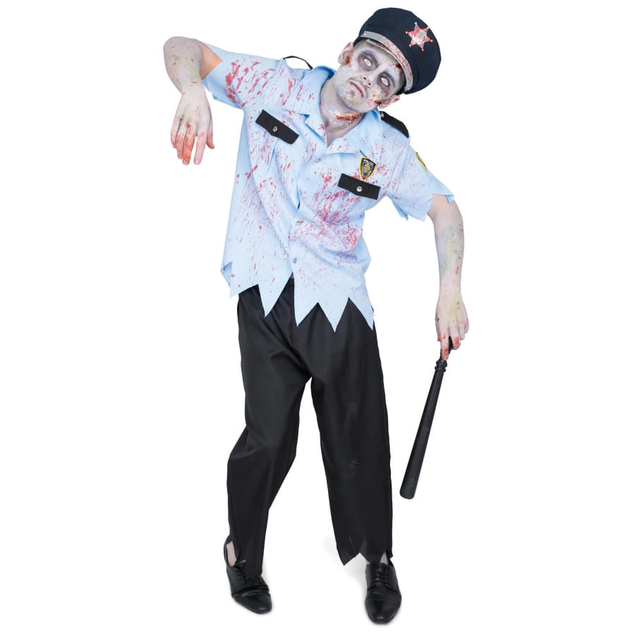 L'uniforme de policier zombie pour homme est un costume de 3 pièces.