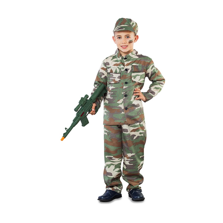 L'uniforme de soldat pour garçon est composé d'une casquette, d'un pantalon et d'une chemise.