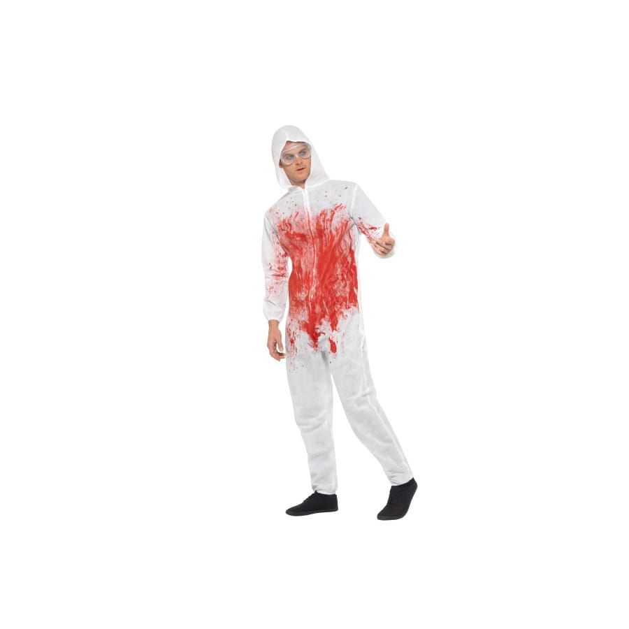 Sur le devant, elle est couverte d'une fausse tache de sang de couleur rouge. Avec cela, une paire de lunette de protection.