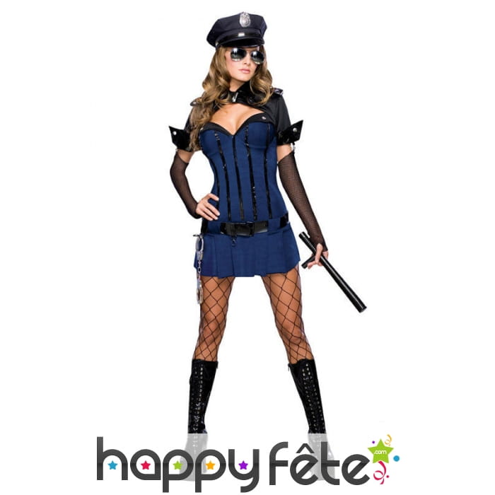 L'uniforme robe bleu courte de policière est un assortiment de plusieurs pièces.