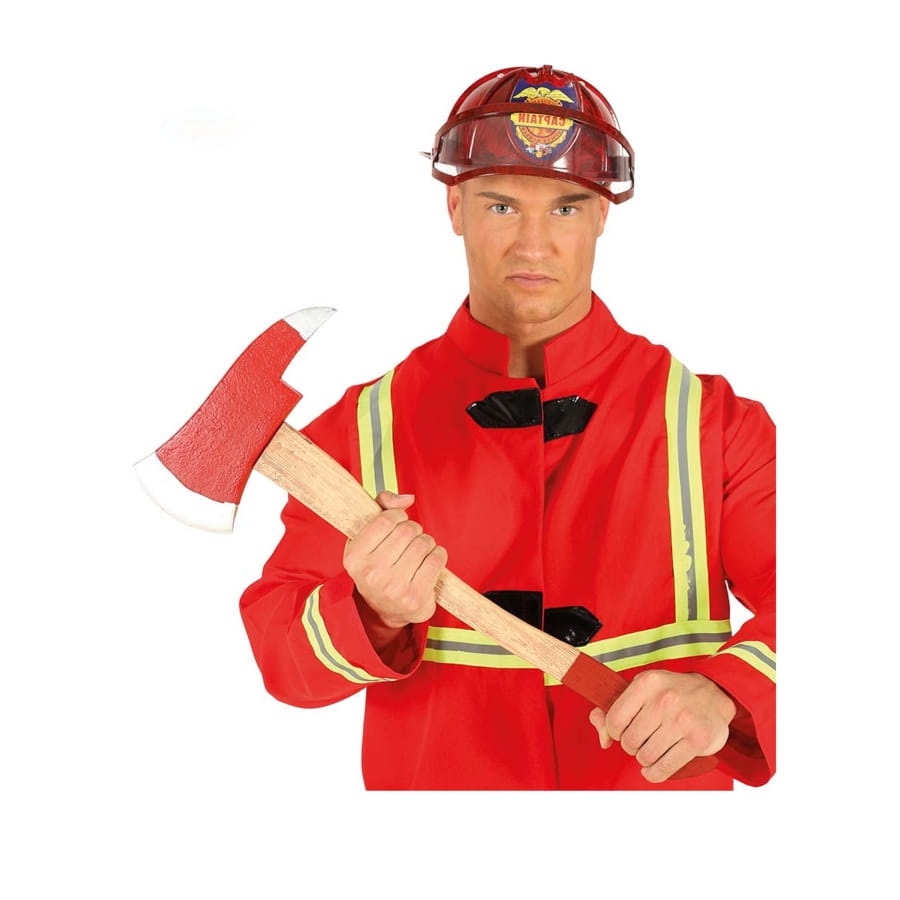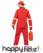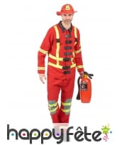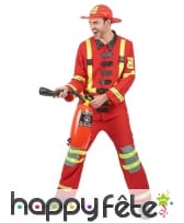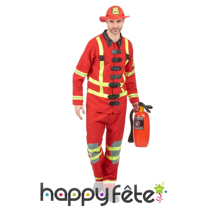 Un chapeau rouge accompagne également la tenue et un écusson sur lequel est imprimé Fire figther est visible dessus.