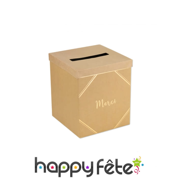 Pour votre événement, avez-vous pensé à une urne pour recueillir les messages, les dons ou les enveloppes de vos invités ? Notre urne en kraft avec inscription "merci" est exactement ce qu'il vous faut !