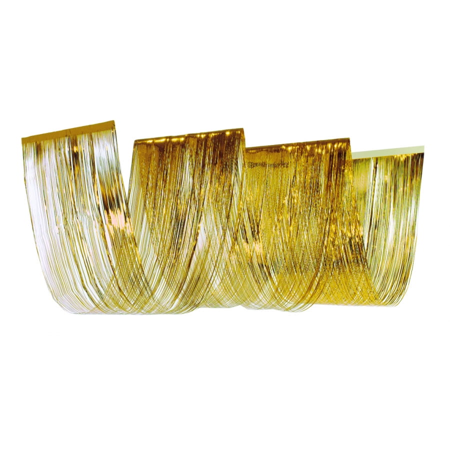 Vague de plafond ignifugée dorée. Cet accessoire mesure 450 centimètres de longueur sur une largeur de 50 centimètres. Cet accessoire est idéal pour décorer de grandes surfaces à l'occasion des fêtes de fin d'année.